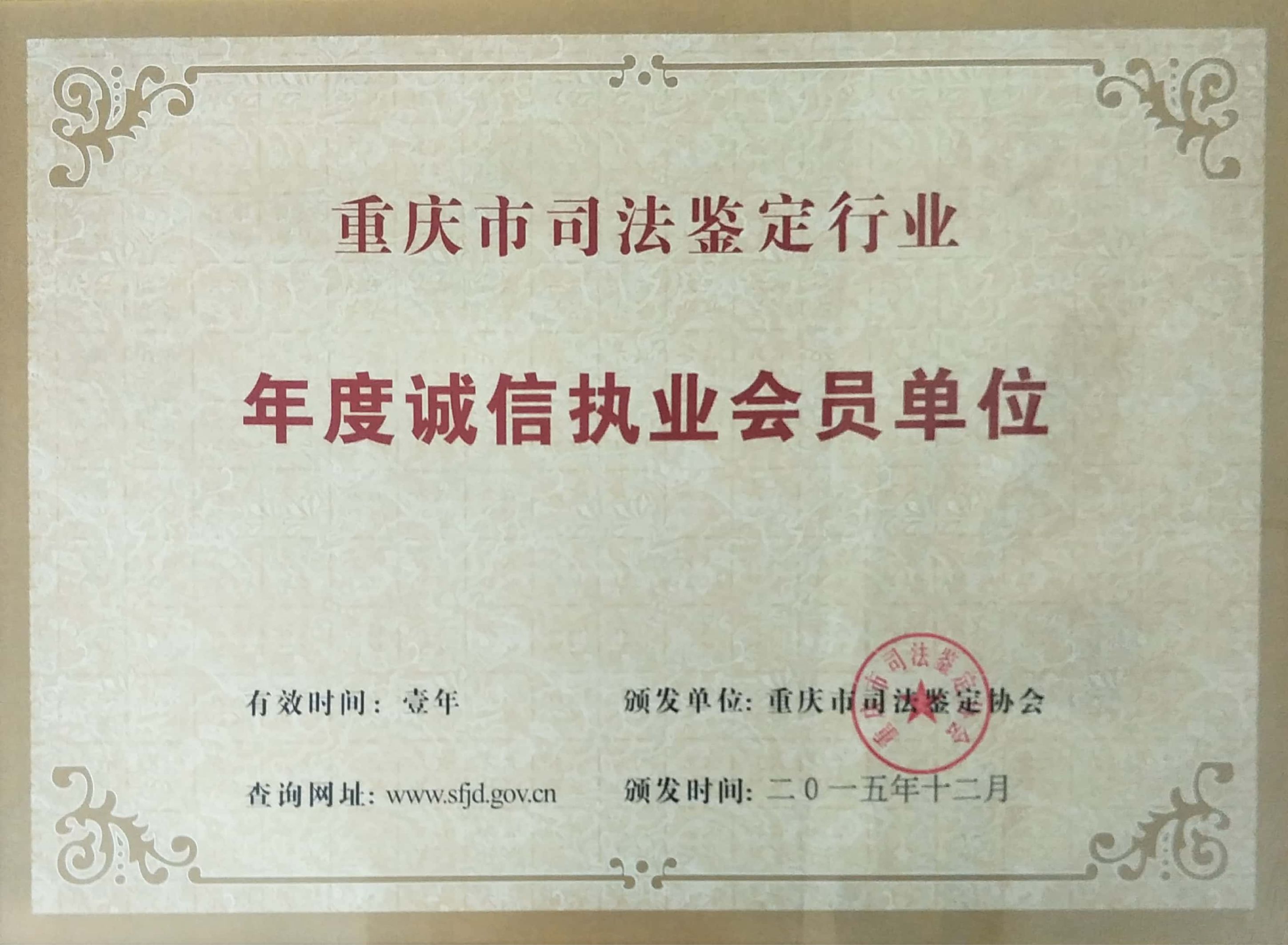 2015年重庆市司法鉴定行业年度诚信执业会员单位