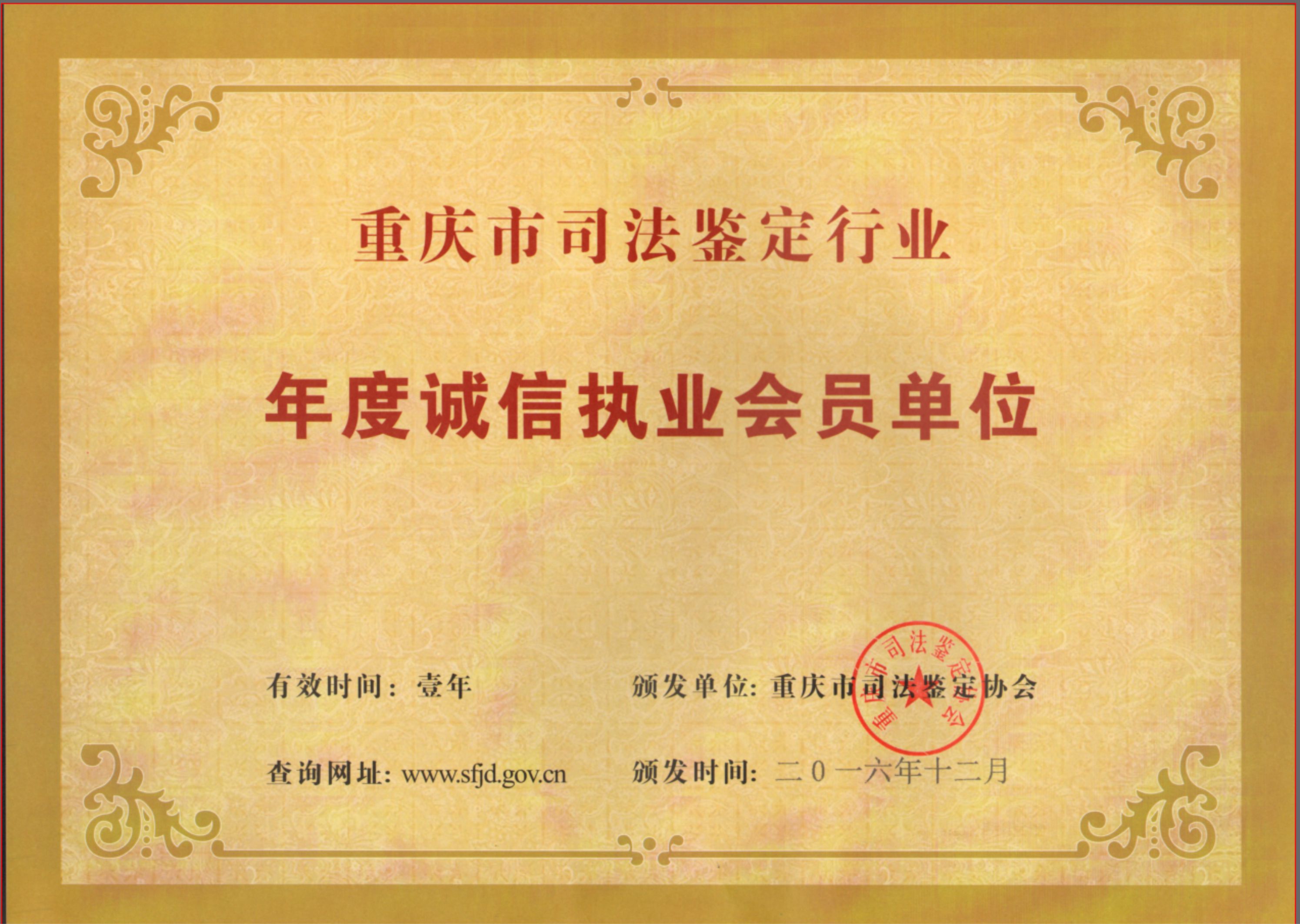 2016年重庆市司法鉴定行业年度诚信执业会员单位